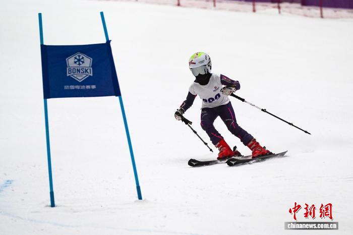图为教死们正在举动现场停止平地滑雪比拼。中新社记者 赵宇航 摄